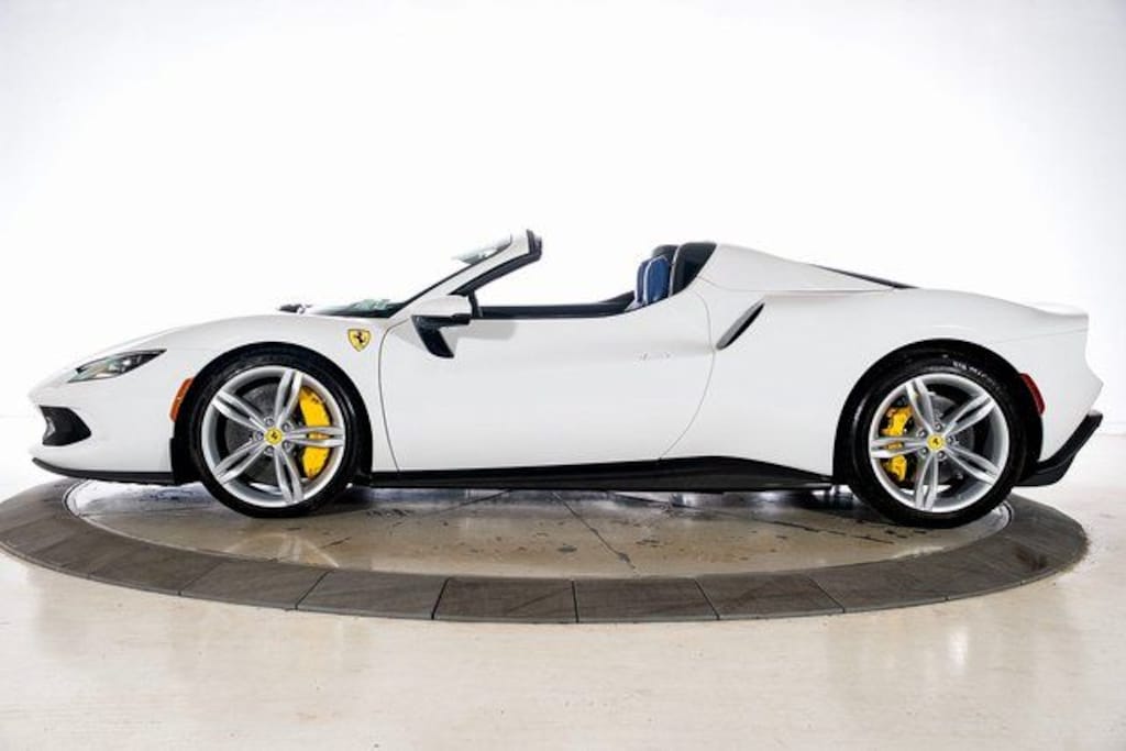 Ferrari of Long Island is proud to present this breathtaking Ferrari 296 GTS, finished in Bianco Cervino over a stunning Azzurro Santorini interior with Bianco contrasting stitching. This elegant and rare color combination beautifully highlights the 296 GTSs sculpted lines and open-top performance character.